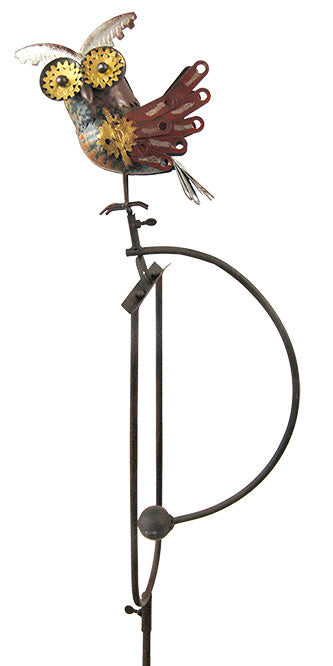 Esschert Staked Metal Mechanical Alert Owl Rocker, 55"H