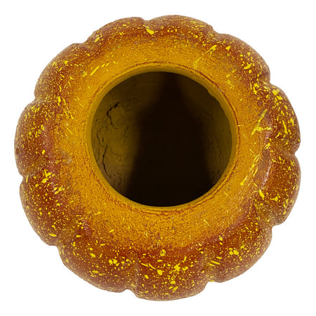 Adorn your deck or garden with a touch of autumnal cheer using this 4 Seasonal Trends Orange Artisanal Squash Pumpkin Statue. This beautifully rendered representation of a squash will stand out against your landscaping with its rich orange tone, flecked by spots of lively yellow for added detail. Vertical grooves along the body further the realistic look, while a light brown, raised stem caps this piece for lovely, natural style. This gorgeous accent has a convenient, 3" diameter hole on its base for stowing away small items if desired, while also ensuring it remains lightweight. Place this beautiful terra cotta squash figurine along your walking path or in your foyer to instill harvest cheer and wonder for the fall season. Celebrate the pageantry of autumn holidays with help from this Orange Artisanal Squash Pumpkin Statue.