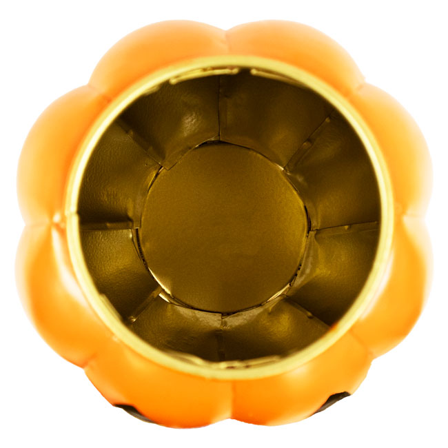 - Orange, powder coated exterior and gold toned interior offer bright, traditional colors