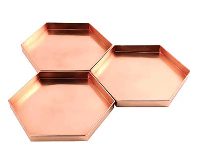 Note: This case pack contains 3 of the Achla Designs Copper Hexagonal Plant Trays, 8"L each.