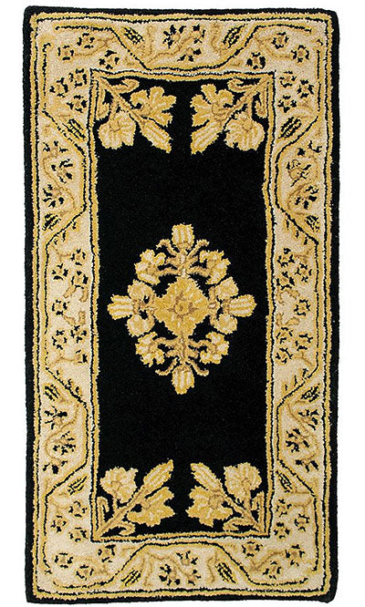 Place a classical accent in front of your fireplace with this Achla Noir Jardin Rectangular Rug. The traditional tones and convenient size of this mat offer plenty of versatility, looking lovely in your living room, den, bedroom, or a hallway. The generous, black wool base captures attention, enhanced by yellow, tan, and beige flower figures. A matching, beige border highlights the rectangular shape, and additional blooms here and in each corner unify the item. Its virgin wool construction naturally retards flame, making the piece perfect for use near your hearth, and the soft pile creates a convenient kneeling spot when tending to the fire. Deep, saturated tones throughout the item ensure it remains bright and visible for many seasons, and its classic size looks great virtually anywhere in your home. Add traditional elements to your living space with this Noir Jardin Rectangular Rug.