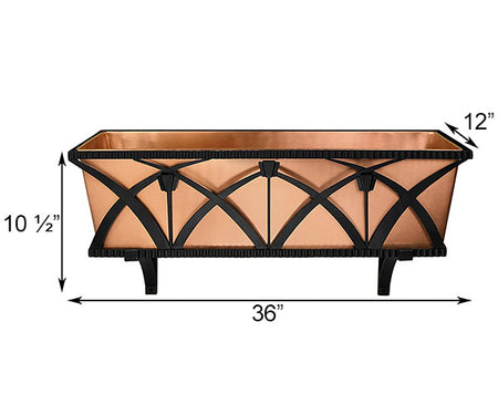 Achla Rookwood Copper Planter with Decorative Brackets, 36"L