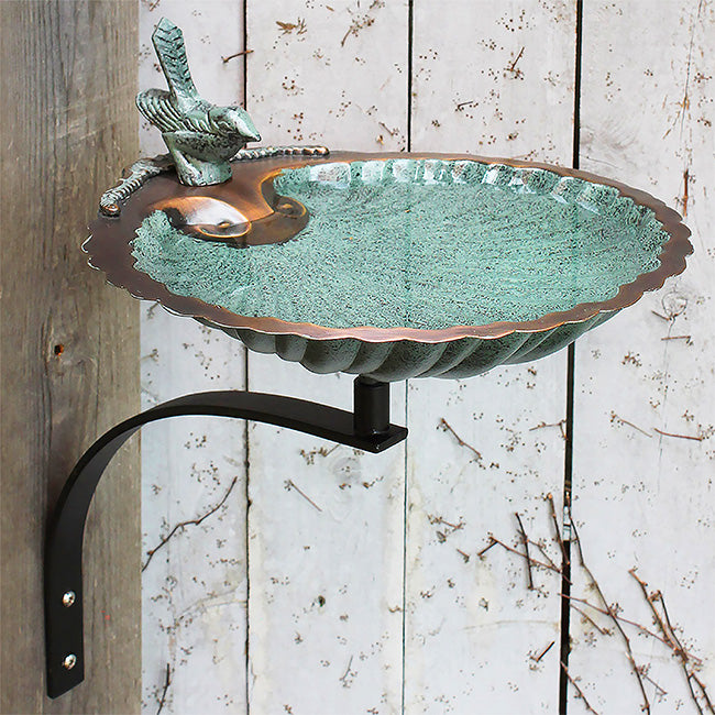 - Set of 8 aluminum bird baths, each shaped like a classic seashell and attaching to an included wall bracket