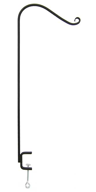 Add a beautiful garden decoration to your deck or balcony with the Achla Single Deck Hook. This rail mounted hook is ideal for those without yard space, such as apartments or condominiums, or for just adding an extra little touch to the deck of your home. The 12" long hook features an elegant, arched top and outwardly curled ends. This arch is perfect for holding potted plants or bird feeders, and will stand up to years of use with its rugged construction. The sturdy, 0.5" diameter, powder-coated iron pole is securely welded to a deck bracket. The bracket uses an easily turned eyelet screw that tightens the clamp to fit deck rails up to 2.75" thick. Give a decorative touch to your deck rails with the Single Deck Hook.