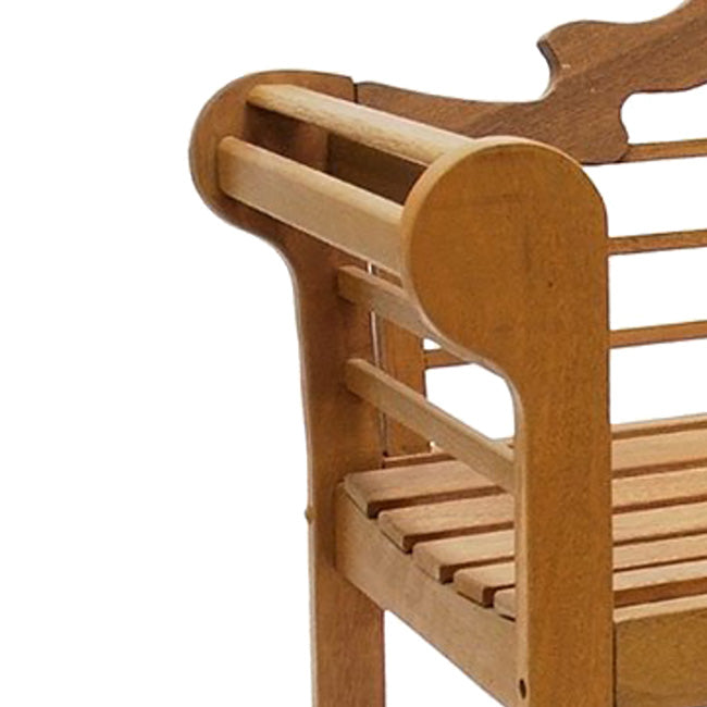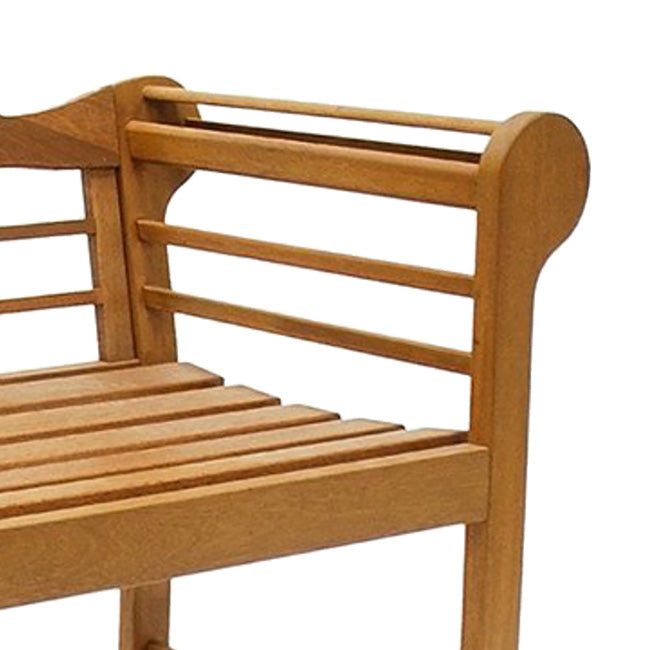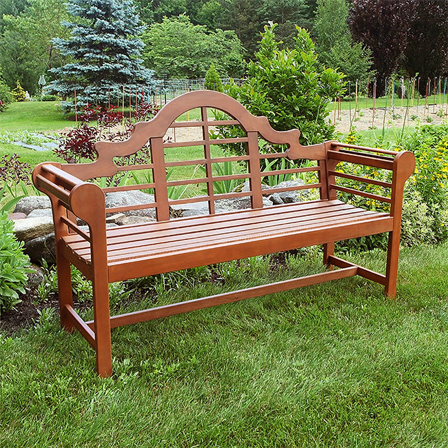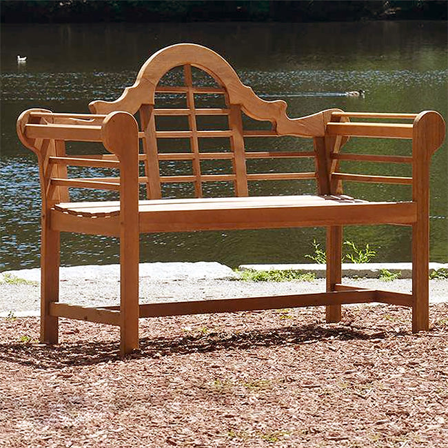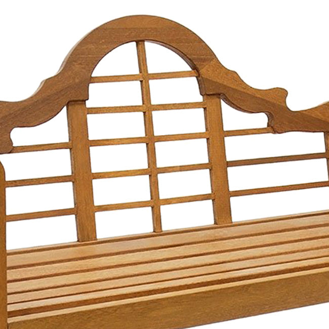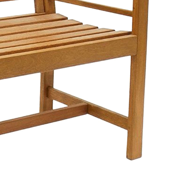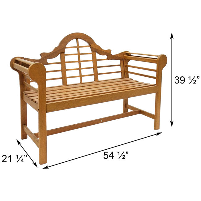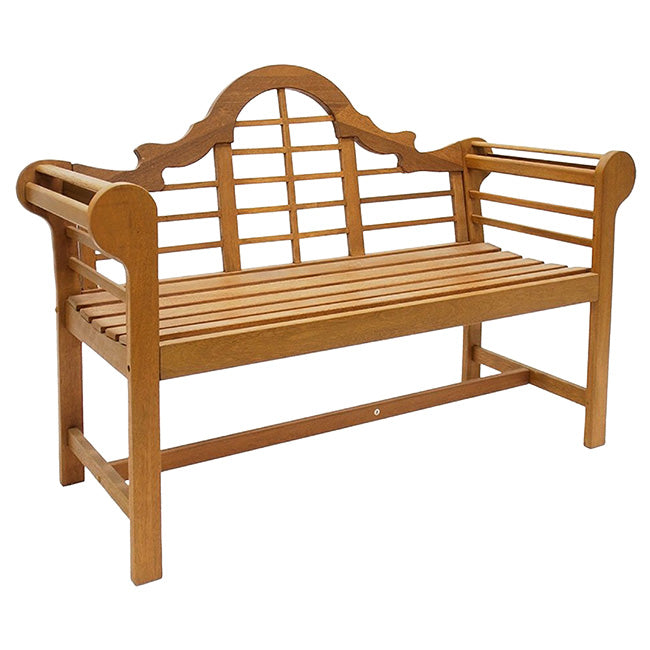 Add a dramatic piece of famous architecture to your outdoor garden using this Achla Wooden Lutyens Bench. This hardy bench, based on a classic furniture design from British architect Edwin Lutyens, will dutifully create a wonderful focal point and beautiful resting spot in the garden. The sustainably harvested, hardwood construction makes for a sturdy and durable bench, while its pleasing tan complexion accelerates its natural appeal. A striking arch brings height and dimension to this piece, with its apex forming the center of the bench back. Gentle curves direct attention softly downward from this high point, while rolled arms on either side round out the lovely effect. Wooden slats form a grid pattern beneath the arch, lending both reliable support and decorative contrast to the item. The 47.75" long and 15.25" deep seat extends from the back of the unit, and the slats here curve slightly downward to create a comfortable and enjoyable resting spot. A pair of 29" long side panels flank the seat and form the legs, letting you situate the magnificent item on virtually any level surface, while support bars between each leg add strength and resilience to the piece. Included hardware makes assembly a simple process, and the accommodating seat width is ideal for one or two people to enjoy. This luxurious item's wooden construction will withstand seasons of use, and its tan hue remains charming showcased indoors or outside. Bring comfortable seating and familiar style to your backyard space with this Wooden Lutyens Bench. Assembly required.