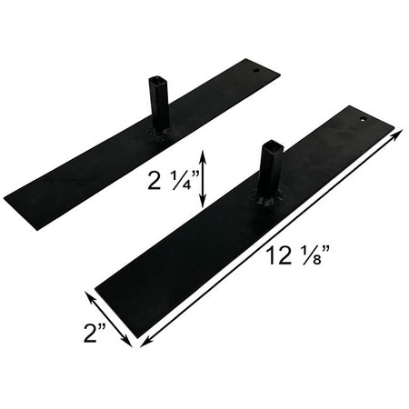Handily showcase your existing American GardenWorks Screen Trellis on your patio or other flat surface using these American GardenWorks Matte Black Screen Trellis Feet. Two sturdy, steel slats are designed to sit on a level surface, and their low profile and matte black finish mesh perfectly with a narrow or standard Screen Trellis (not included). A 0.375" square, hollow post extends 2" upward from the center of each slat, allowing you to slide one of your existing trellis legs in each. This enables you to situate the structures on a solid surface, perfect for use in weddings, plays, or even as a temporary screen. The powder coated, steel feet remain durable and usable over and over again. Showcase your existing Screen Trellis on your deck using these Matte Black Screen Trellis Feet. Made in the USA.