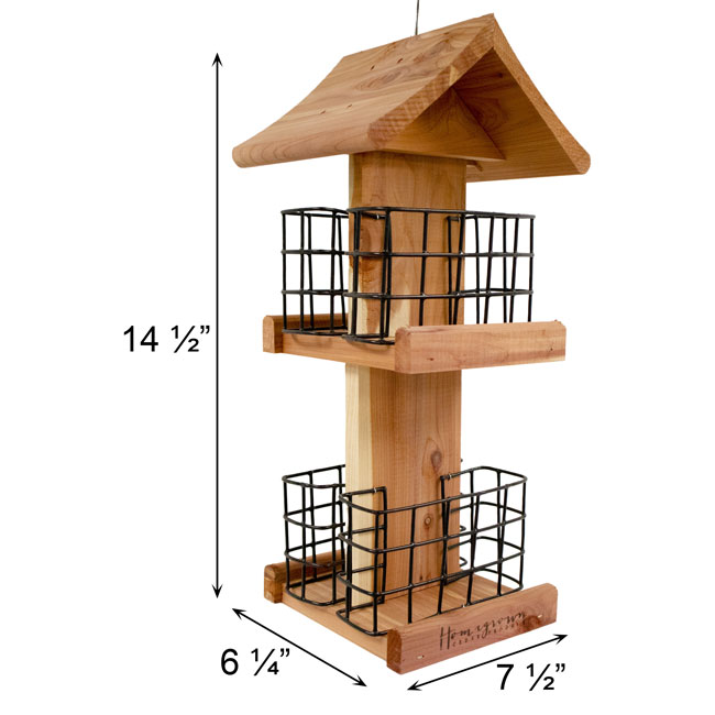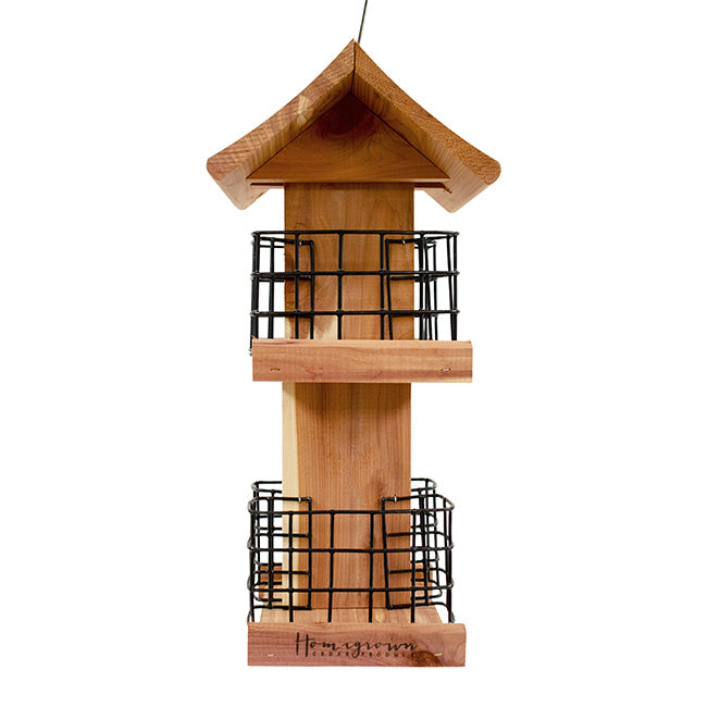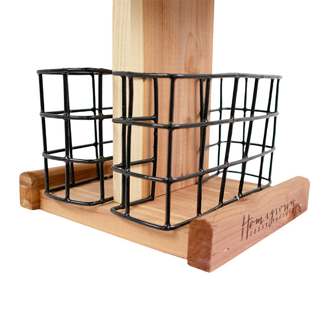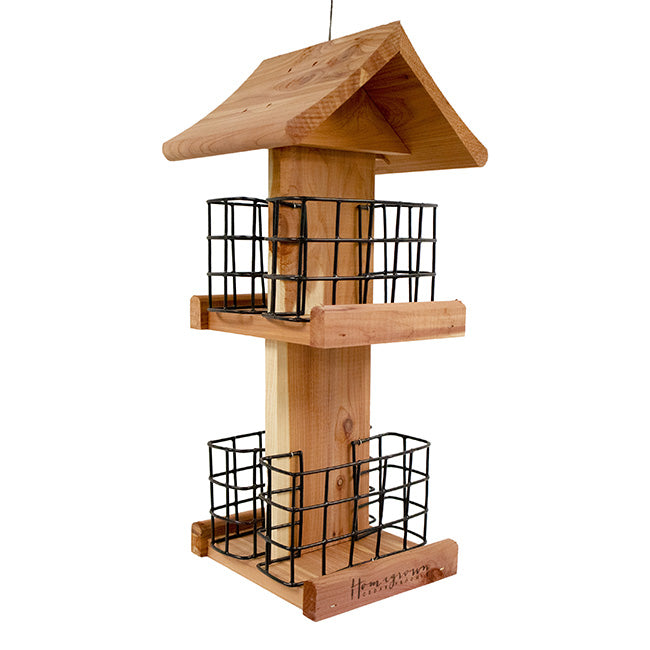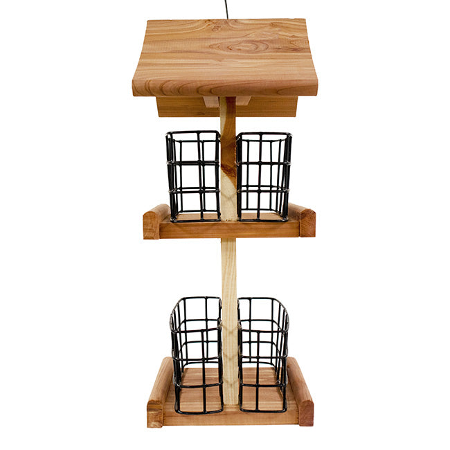 Offer an alternative meal to your favorite birds while adding natural style to the garden using this premium quality, domestically sourced Amish Made Cedar Quad Suet Cake Tower by Prime Retreat.