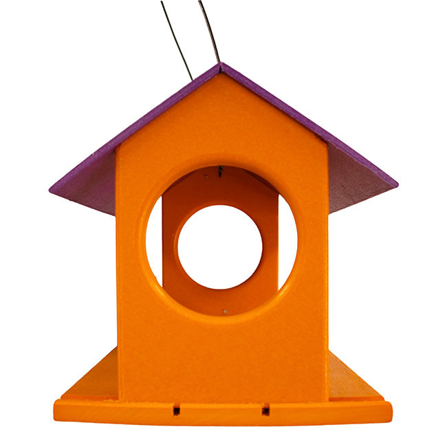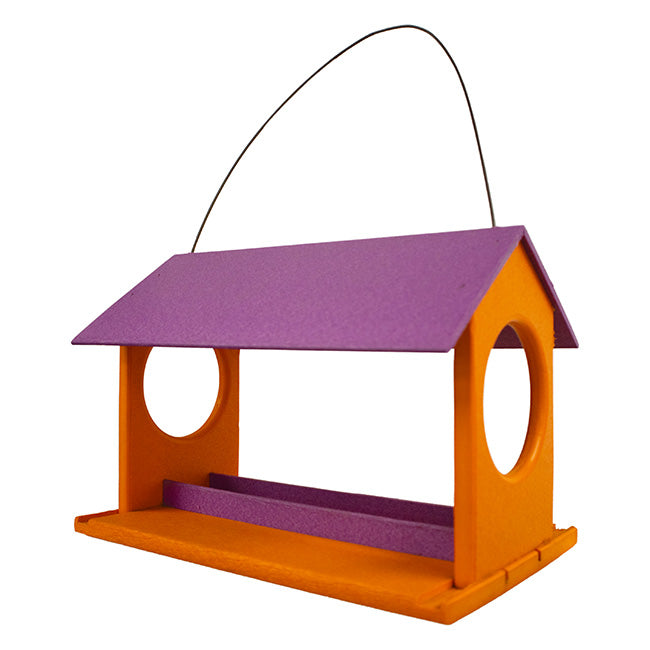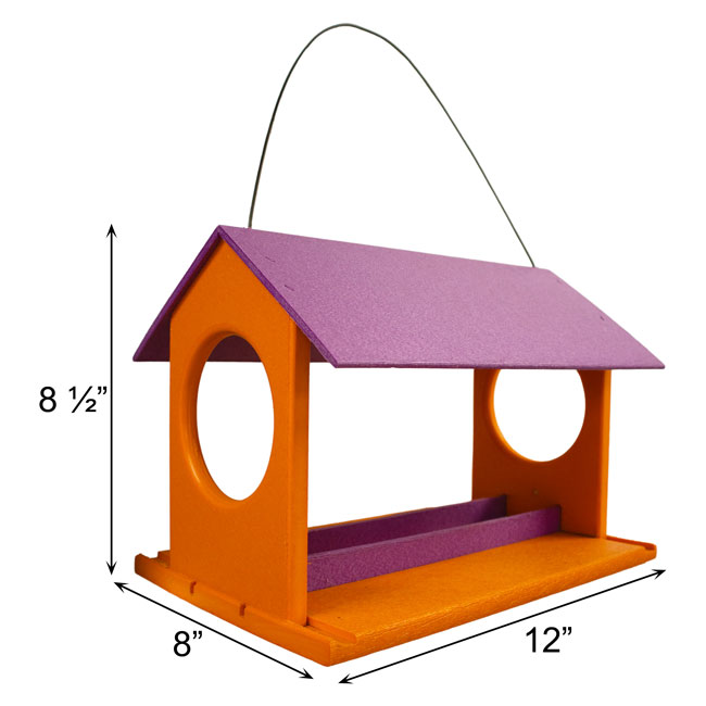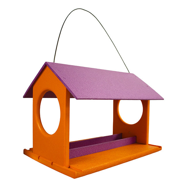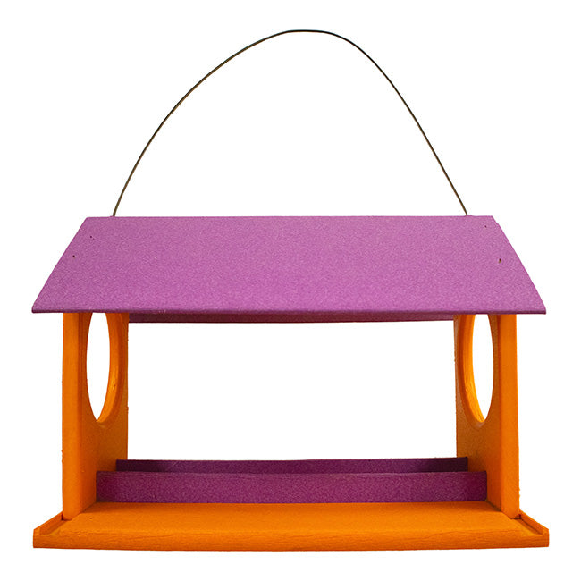 Attract a fantastic variety of birds to your yard with this vibrant, domestically sourced, premium quality Amish Made Purple and Orange Recycled Plastic Fly-Through Feeder by Prime Retreat.