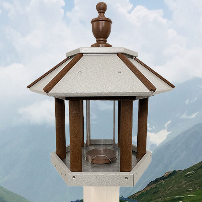 Amish Made Recycled Plastic Gazebo Bird Feeder, Brown & Gray