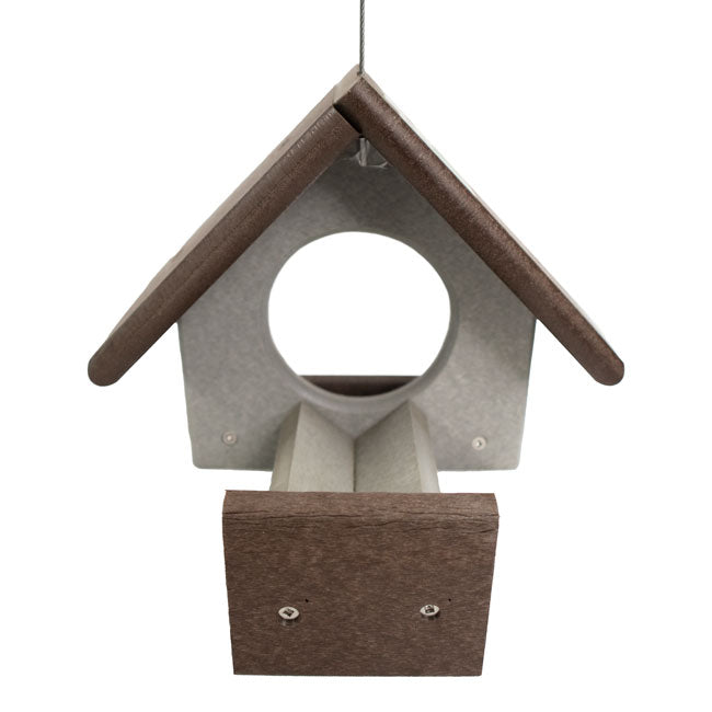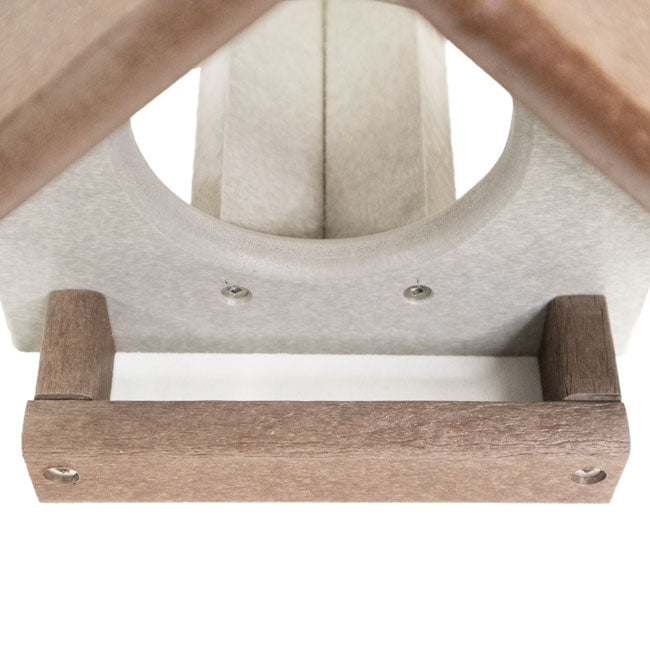 - Pitched roof keeps the perching and feeding area protected from the elements