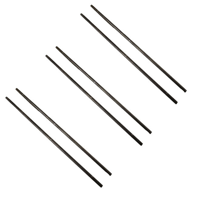 - Included, metal rods install into predrilled holes on two feet, for sturdy anchoring.