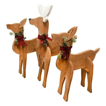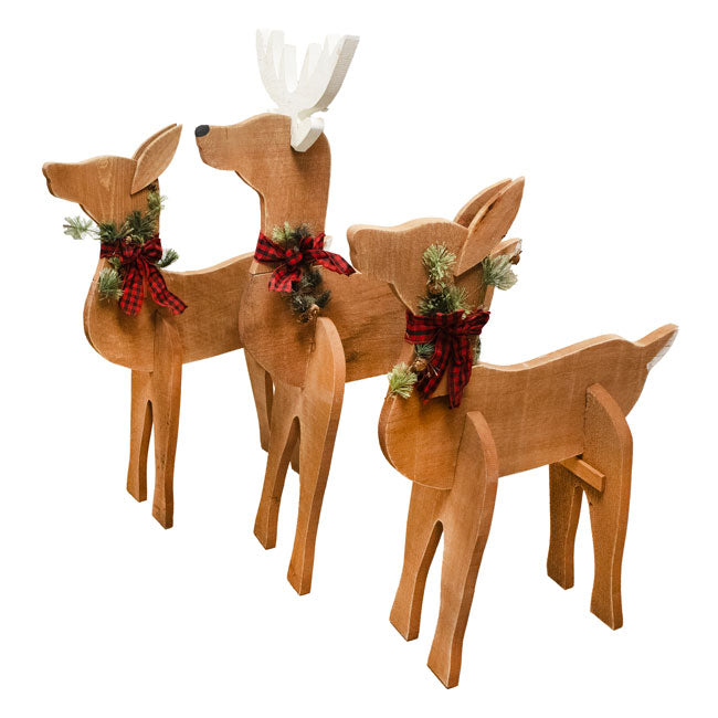 Create a lively and rustic holiday showcase on your patio or walkway when you prominently display this Amish-Made Wooden Deer Statues Package.