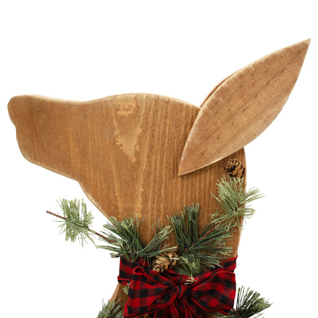Qty 1 Amish-Made Wooden Reindeer Statue