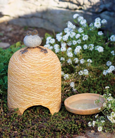 Invite toads to visit your yard with the Ancient Graffiti Soft Orange Ceramic Toad House with Bath. This charming, domed unit provides toads a wonderful shelter, and also adds a whimsical hint to your garden. Allowing these amphibians a habitation in your garden provides natural pest control, as they nightly dine on flies, grasshoppers, and slugs. Toads prefer to rest in shade, protected from the sun during the day, and this orange, ceramic unit perfectly meets their needs. A 2.75" wide and 1.5" tall opening at the base allows toads to enter the unit, and its 5" interior diameter offers plenty of space for them to rest. The ceramic body, orange hue, and textured finish enhance your garden, while a metal and river rock toad figurine at the top lends a whimsical hint. Place the matching, 4.125" diameter bath next to this shelter, for toads to soak in water and stay comfortable. The level base on both the bath and home enable them to sit evenly within your landscaping, and the orange hue brings surprising drama to them. Keep toads happy and safe in your garden with this Soft Orange Ceramic Toad House with Bath.
