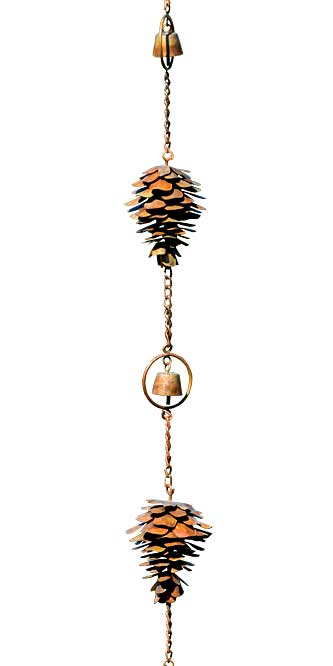 Ancient Graffiti Pine Cones and Bells Rain Chain, Flamed