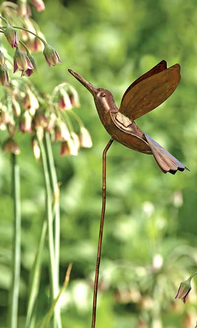 Ancient Graffiti Staked Hummingbird Garden Ornament, Flamed
