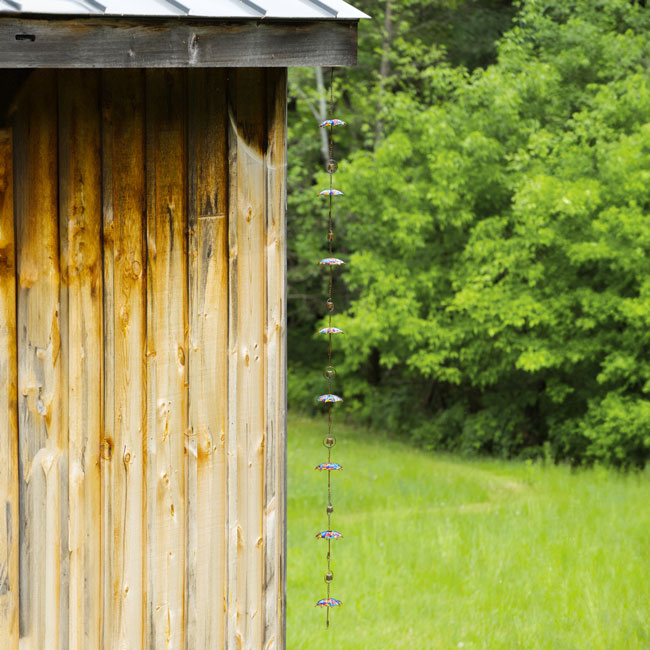 - Replacing a traditional downspout with a rain chain brings a bit of whimsy and design to your home