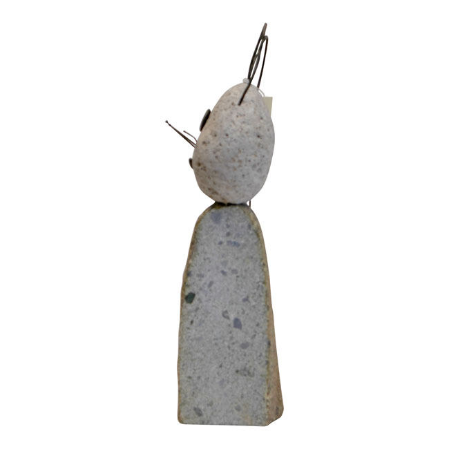 - Button style eyes of steel wire add a whimsical touch to the figure's facial features