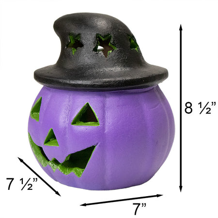 Artisanal Jack-O-Lantern with Witch Hat Luminary, Purple
