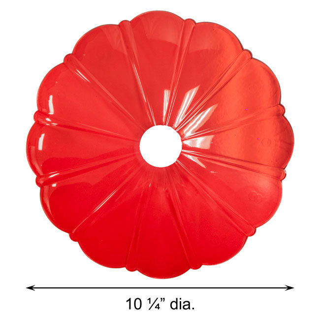 Protect the hummingbird feeders in your backyard from harsh outdoor elements while adding a splash of vibrant color to your landscaping with the Aspects Red HummBella Dome. Placing this protective dome on the rod of your existing Aspects HighView or HummZinger feeder gives you a brilliant way to cover your unit and keep it safe against unwanted outdoor elements. Simply use one of two included spacing tubes to ensure easy installation on the appropriate feeder, sliding the included dome adapter up the existing rod before easily locking it into place for a wonderful and handy birding accessory. The bright red tone lends a wonderfully vivid accent to your bird garden, with its scalloped design adding visual interest and contrast among your natural décor, while the expansive, 10.25” diameter provides thorough coverage for a fresh and unspoiled feeding station. Durable, polycarbonate construction makes this a lasting and durable unit that will remain reliable throughout repeated outdoor use, allowing you to provide fresh snacks for hummingbirds for many seasons. Deter the threat of rain and other harsh weather while ensuring entertaining hummingbirds at your feeding haven enjoy a clean meal with this Red HummBella Dome. Made in the USA. Lifetime guarantee.