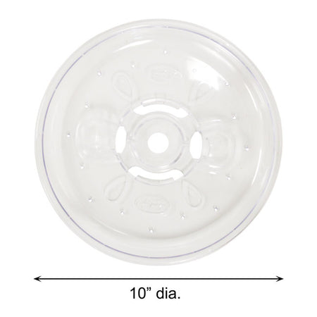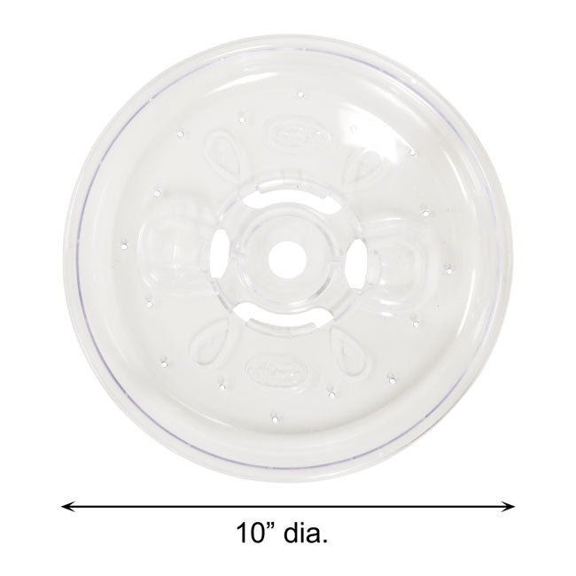 Ensure that your bird seed does not go to waste by adding this unobtrusive and handy Aspects Quick-Clean Seed Tray to your existing Aspects Quick-Clean tube feeder. Attaching this helpful accessory to select Aspects feeders (not included) helps you cut down on wasted seed while also offering additional perching space for visiting birds. This expansive, 10" diameter unit connects easily to your existing Aspects Quick-Clean feeder, as integrated domes within the plastic base align with the squeeze tabs on the feeder base, for easily installing or detaching the tray as needed. Sporadic holes are included in the tray's durable construction to further facilitate the drainage of excess water, for a clean and dry treat. The hardy item will offer reliable use in your bird garden for many seasons while blending in easily with your existing outdoor décor, and the added perching area will provide extra landing spots for hungry feathered friends. Offer more birds a convenient dining zone with this Quick-Clean Seed Tray. Made in the USA. Lifetime guarantee.