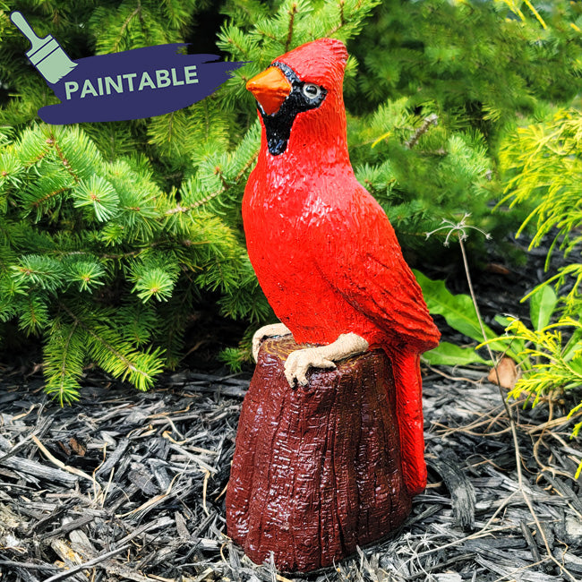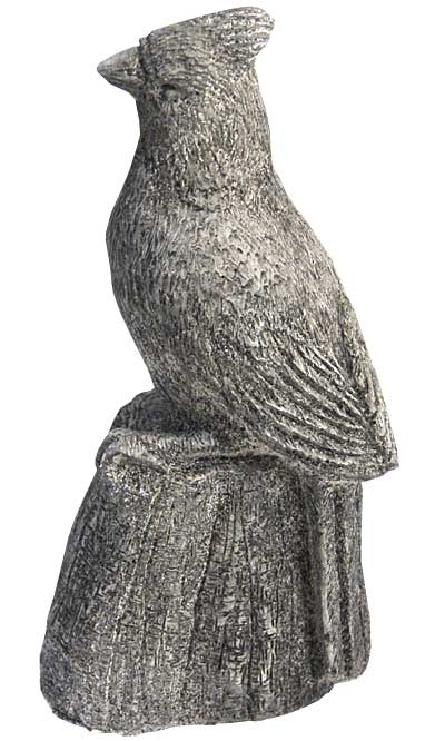 Enjoy a feathered friend in your landscaping all summer with this Athens Pre Aged Cardinal on a Stump Statue. This highly detailed figure captures the style and elegance of a northern cardinal with ease, while the gray color throughout enhances the concrete construction. The familiar, raised crest and short beak of the bird add an alert look to the piece, and it stands on a generous tree stump figure for fantastic height. Impressed lines throughout the unit bring remarkable texture to your garden, and the base is simple to rest on a level surface. This concrete figure remains lovely outdoors through spring, fall, and summer, and can be displayed indoors in winter for longevity. Add a delightfully charming bird to your home or garden with this Pre Aged Cardinal on a Stump Statue. Made in the USA.