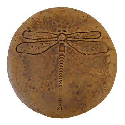 Add a recognizable wetland hint to your landscaping with this Athens Autumn Wheat Round Dragonfly Stepping Stone. Placing this hardy unit in your landscaping not only helps direct foot traffic; this circular piece also celebrates wetland wildlife easily. An impressed dragonfly figure adorns the center of the item, its slender body and outspread wings forming the classic silhouette. Vein details within each wing capture attention, and the brown tones on the unit mesh with your yard. Its 12.75" diameter accommodates many differently sized feet, and the flat base rests within your garden easily. Small impressions on the face of this unit perfectly evoke natural rock, and the concrete construction remains durable for many warm seasons outdoors. Move the item indoors in winter for protection from freezing weather. Further the wetland motif in your yard with this Autumn Wheat Round Dragonfly Stepping Stone. Made in the USA.