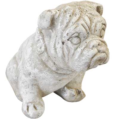 Celebrate your favorite dog breed in your home or yard with this Athens Marble Tone Small Bulldog Statue. This highly detailed, recognizable figure is perfect for resting within your garden or living room, showcasing your love of English Bulldogs with ease. The dog's head and neck sport an outstretched position, with wide eyes and flattened ears creating an expectant look, as if it is awaiting a treat. An inwardly turned front leg and raised collar further the charming unit, while the concrete construction forms a durable piece. Off white hints above the gray overall hue create a marbled effect, and the level base of the statue rests on a flat surface in the home or outdoors. The concrete remains durable in your garden through spring, summer, and fall, and can be used as a fun indoor adornment during the winter months. Proudly proclaim your love of English Bulldogs by displaying this Marble Tone Small Bulldog Statue in your yard. Made in the USA.