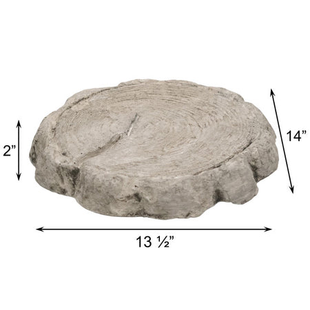 Amplify your garden path's natural beauty and woodland charm by showcasing this Athens Pre Aged Small Log Stepping Stone in it. This enchanting, concrete accessory lends elegance to your outdoor space, with an earthy and understated gray tone perfectly complementing your rustic surroundings. The substantial stone features scalloped edges to evoke aging tree bark, while concentric rings and a realistic representation of a crack traveling through the piece furthers the arboreal motif. Shades of darker gray blend with the lighter complexion for a striking, natural effect, wonderfully meshing with your landscaping. This ample item may be easily placed on any level surface among your yard’s décor to gently guide friends and family along a desired path, and its generous width is suitable for most foot traffic. The staunch, concrete construction lends supreme stability as the piece beautifies your flowerbed, easily holding up against outdoor exposure in warmer months. In times of cold weather, simply bring in the rustic item for added longevity and quaint indoor display. Give your landscaping a timberland hint with this Pre Aged Small Log Stepping Stone. Made in the USA.