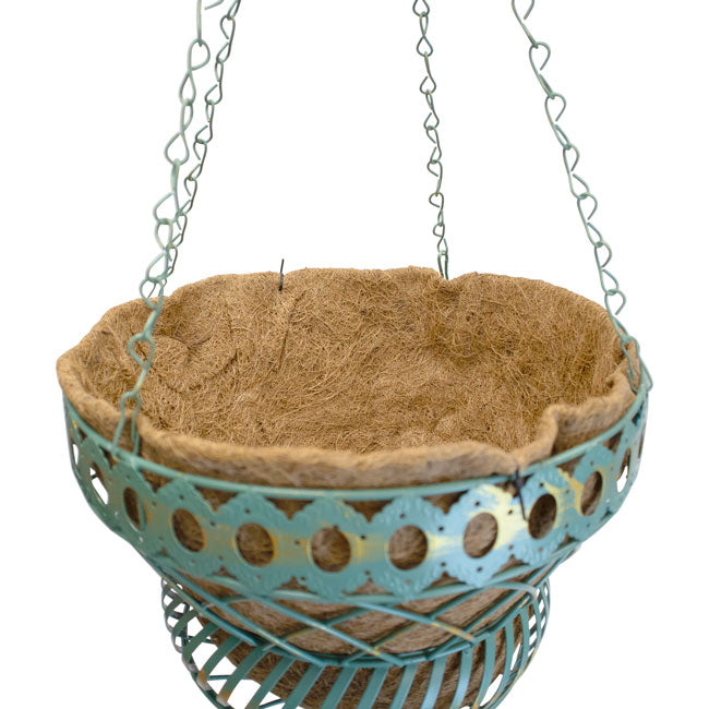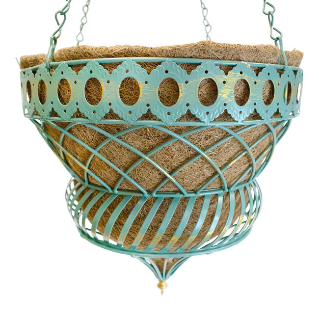 - Decorative, rounded hanging planter gives ample space for hanging flowers