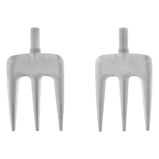 - A pair of fruit tines installs into the perch assembly and each fork can hold a piece of orange, apple, or banana