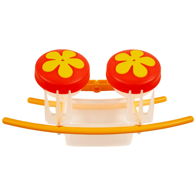 - Dual, circular hummingbird boxes each accommodate 4 ounces of nectar, with a yellow flower shape on each lid creating a single feeding port