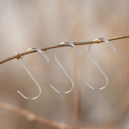 Easily hang a few bird feeders or decorations from branches using these BestNest Stainless Steel "S" Hooks. This trio of hooks makes displaying a few ornaments or light strands simple, and brings a bit more length and versatility to your hanging items. The top arch of each hook attaches to a hook or metal rod up to 1" wide, while the bottom of each is perfect for holding a feeder or other adornment. The chrome look of these pieces adds a sleek hint to your yard, and their stainless steel construction remains durable and hardy for seasons of use. Display your hanging items easily with help from these Stainless Steel "S" Hooks.