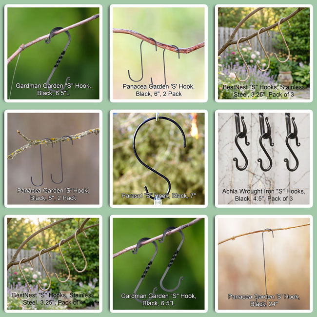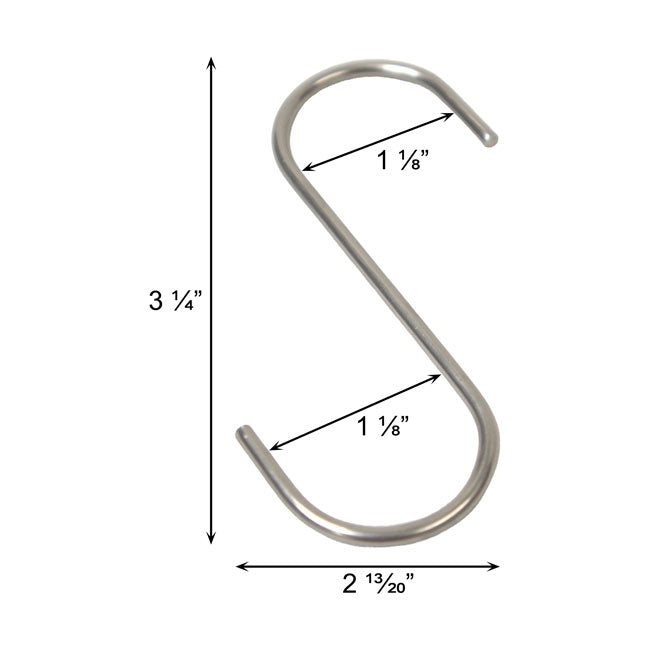 Easily hang a few bird feeders or decorations from branches using these BestNest Stainless Steel "S" Hooks. This set of 4 hooks makes displaying a few ornaments or bird feeders simple, and brings a bit more length and versatility to your hanging items. The top arch of each hook attaches to a hook or metal rod up to 1" wide, while the bottom of each is perfect for holding a feeder or other adornment. The silver color of each unit adds a bright look, and their stainless steel construction remains durable and hardy for seasons of use. Display your hanging items easily with help from these Stainless Steel "S" Hooks.