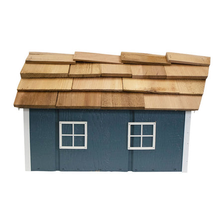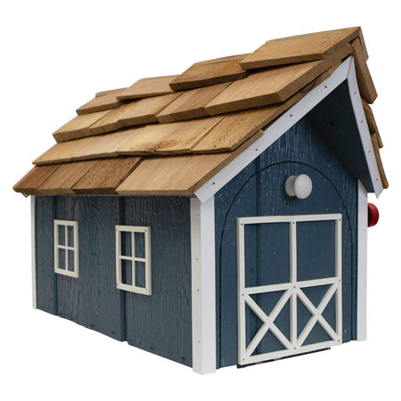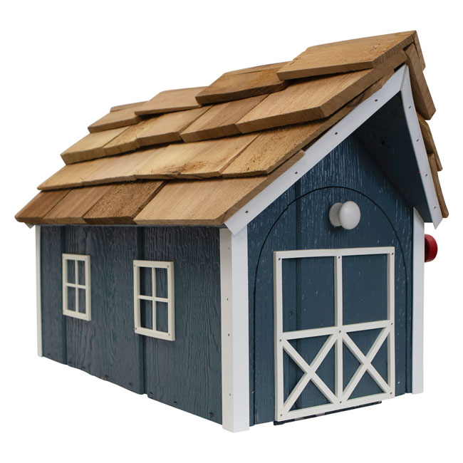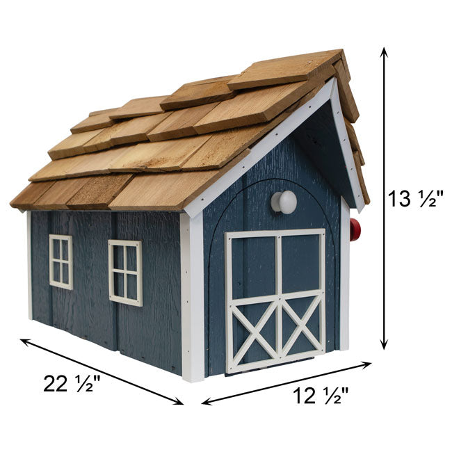 Bird in Hand Blue Amish Made Barn Style Mailbox.