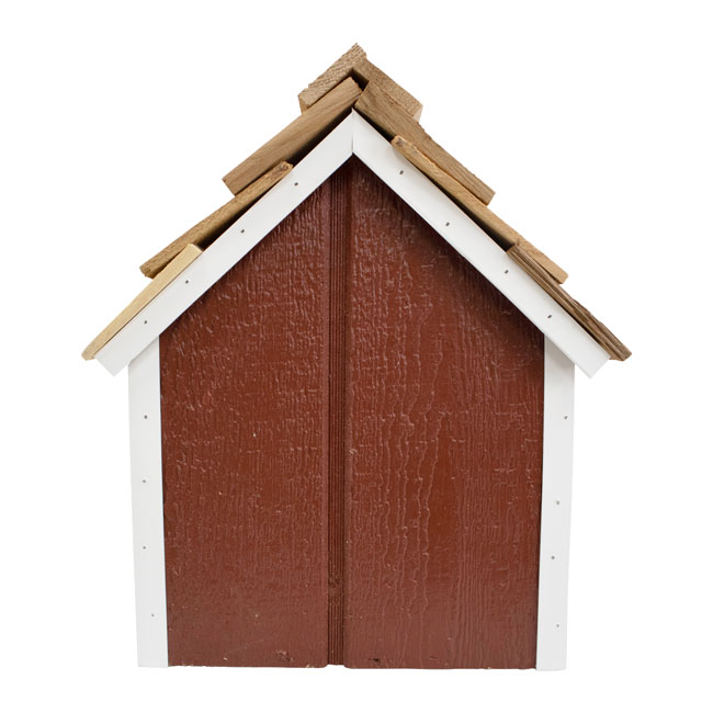 - Charming red tone, with natural wood and white accents, for several seasons of curbside decor