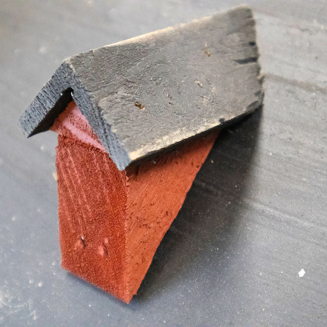 - Red, worn wooden body adds rich color, accented by lighter wood tones for timeless visual interest
