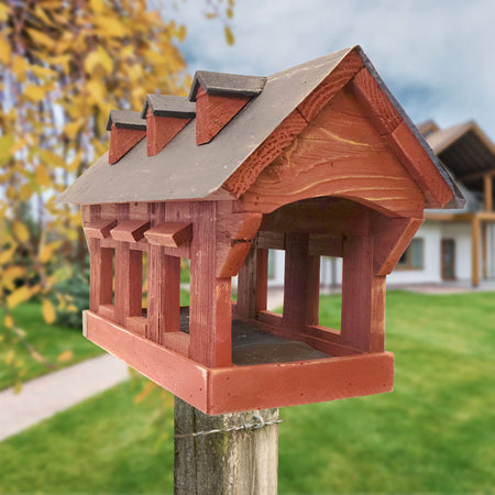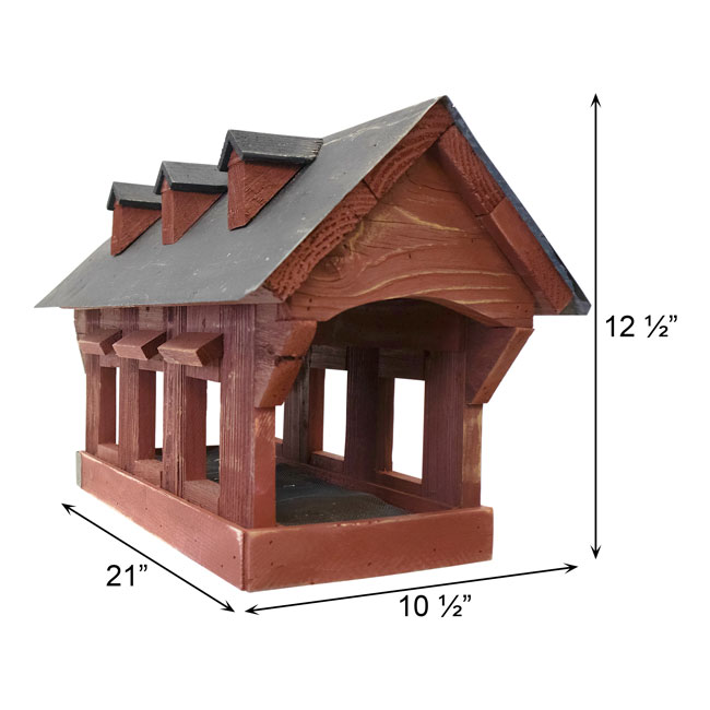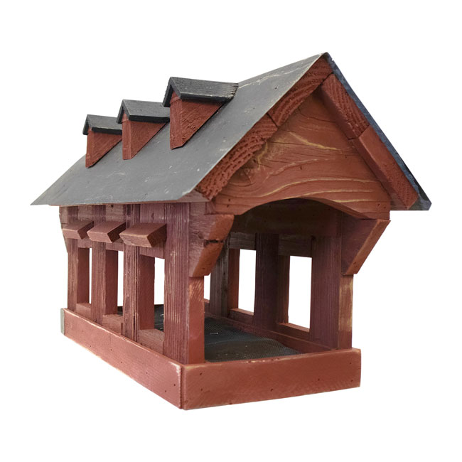 Highlight your love of birding in joyous, rustic style with this fantastic Bird In Hand Amish Made Red Willow Hill Covered Bridge Feeder.