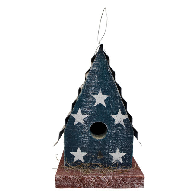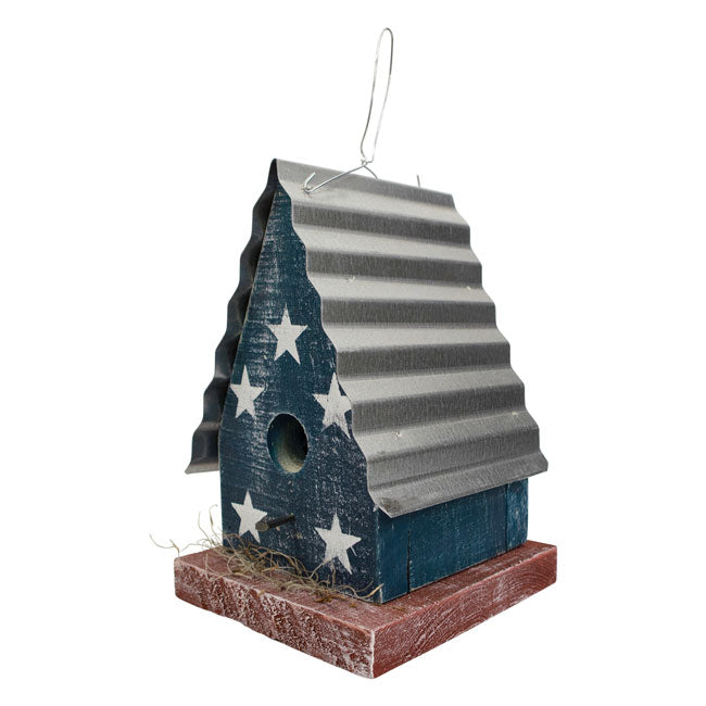 Display your patriotic spirit proudly in the bird garden with this wonderful, rustic Bird In Hand Amish Made Yorktown Bird House.
