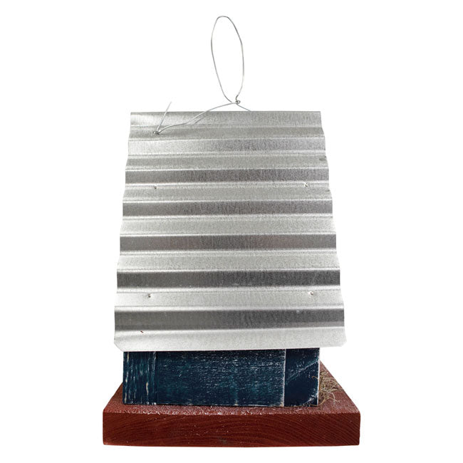 - A wire hanging loop lets you easily display this house from a hook or branch in the yard