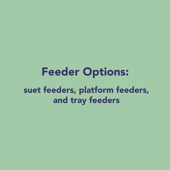Feeder Options: suet feeders, platform feeders, and tray feeders
