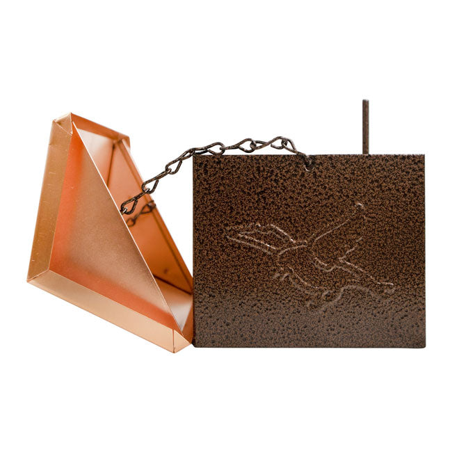 - Each of the 4 steel sides has a mottled brown finish and raised bird silhouette for an artistic look