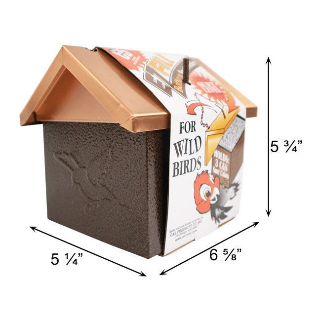 - Rectangular container holds 3 standard seed or suet cakes, and a 0.5" square mesh grid at the base enables clinging birds to dine