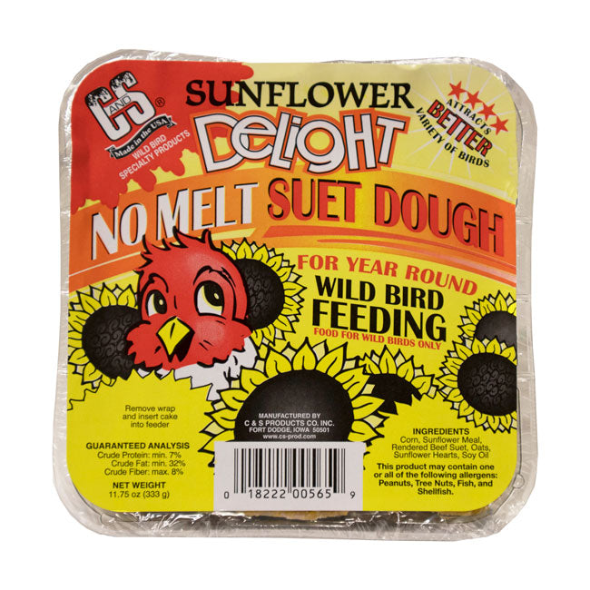 Note: This case pack contains 12 C&S Sunflower Delight No Melt Suet Dough cakes, 11.75 oz. each.