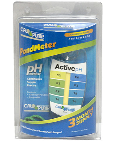 Easily monitor the pH levels in your water garden or aquarium with the Cal Pump pH Test Monitor. This handy gauge indicates the pH in your water with a center color strip, which alters as the acidity fluctuates. Each value of alkalinity or acidity from 5.2 to 8.6 corresponds with a different color, indicated on the gauge itself. Match the color of the strip in the center of the item to one of the surrounding color bands to obtain an accurate pH reading. The meter affixes to the glass of your aquarium with the included suction cup, or hangs in your pond with the included lanyard. The active monitor should be replaced every four to six weeks to remain viable, and this package includes two additional active monitors, for a three month supply. Check the pH levels in your water garden or aquarium using this pH Test Monitor.