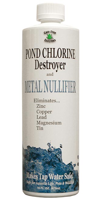 Turn tap water into safe water for your aquatic life using the CareFree Pond Chlorine Destroyer. City tap water often contains high levels of chlorine, chloramine, or other metals, which can harm fish gills or even be toxic to snails and frogs. This concentrated liquid effectively nullifies toxic levels of chlorine and chloramines from tap water, and one ounce treats 200 gallons of water for a lasting product. The concentrate also helps nullify lead, tin, copper, zinc, and magnesium, to keep your aquatic life healthy. Made from minerals and other water enhancing agents, this liquid is safe for fish, amphibians, and invertebrates, with no restrictions on its use. Eradicate harmful elements in your tap water with this Pond Chlorine Destroyer. Made in the USA.