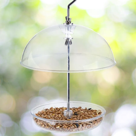 - Moving the dome up and down can keep larger birds from pilfering seed