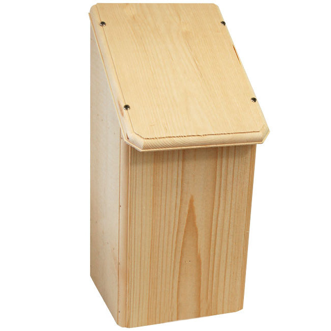 Offer bats an opulent and lasting nesting site by adding this Coveside Bat Mansion to your yard. Providing shelter to these beneficial, flying mammals not only helps control nocturnal insects; it can also help your garden flourish as these animals are excellent pollinators. A taller back and shorter front section on this unique, rocket style home offer bats versatility in where they wish to roost, as they can readily move higher or lower inside the piece to find their optimal temperature. A robust, pine frame sourced from a family owned mill creates this haven, and the 0.75” boards insulate the open-bottom item. Four vertical slats divide the box into 5 separate chambers, fostering bats’ tendencies to create bachelor and nursery colonies, and the rough hewn nature of these panels makes it easy for bats to grip them. The unit accommodates up to 150 bats, and a full, downward slanting roof protects the interior from rain. Place this home against a wall or on a post using its attached metal hanger, or use an adapter (not included) to display it on a sturdy pole. The neutral colored, pine body not only remains durable for several seasons; it also ages over time to a lovely gray for a dynamic addition to your yard. Help bats thrive by placing this Bat Mansion in your yard. Made in the USA.