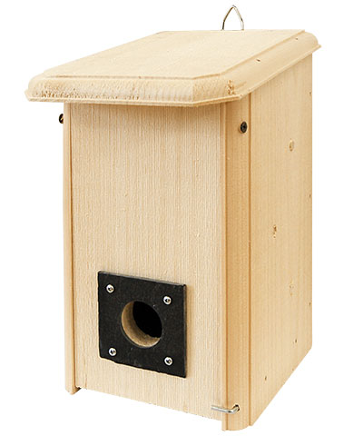 Provide shelter throughout the year to several songbirds by adding this Coveside Convertible Bird House/Winter Roost to your yard. The unique design of this home allows it to be used as a nesting box in the summer, and quickly altered to an avian resting spot for the winter. Its classic, rectangular shape adds a familiar look to your bird garden, and the 1.5" diameter entry is sized for bluebirds and small woodpeckers. A slate predator guard is sourced from a century old roof in Maine and upcycled to surround the entry, preventing birds from enlarging it, and three dowels inside the home provide perching. During cold months, place the door panel so the entry is at the bottom of the shelter. This allows warm air to rise and remain inside the box, creating a cozy spot for songbirds to rest or take refuge from stormy conditions. Invert this panel and remove the perching rods during the summer, so bluebirds or woodpeckers can build a nest. The 0.75" thick, pine boards offer great insulation, and the downward sloping roof directs water away from the cavity. A metal hanger on the back of the abode assists in placing it on a wall, post, or tree, and the yellow hue of the pine accents nearby foliage. Turn your backyard into a haven for feathered friends throughout the year with this Convertible Bird House/Winter Roost. Made in the USA.