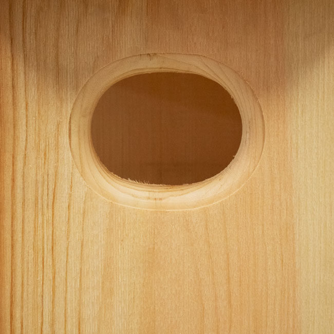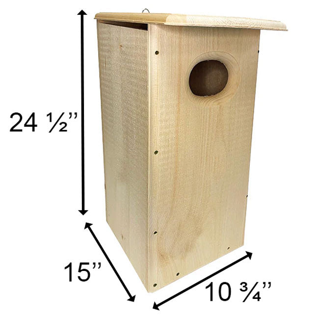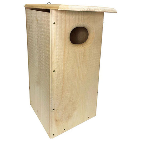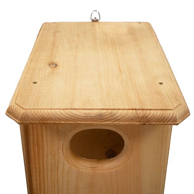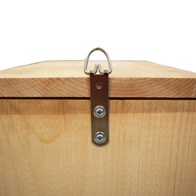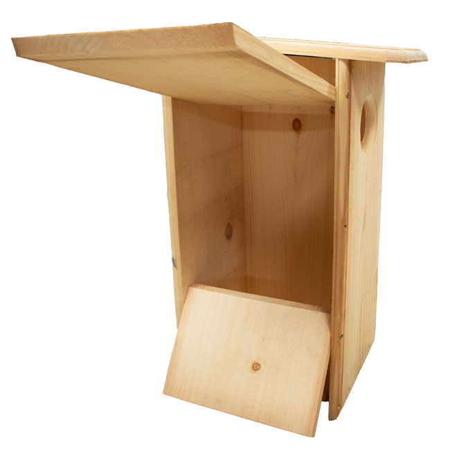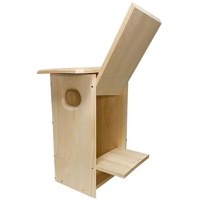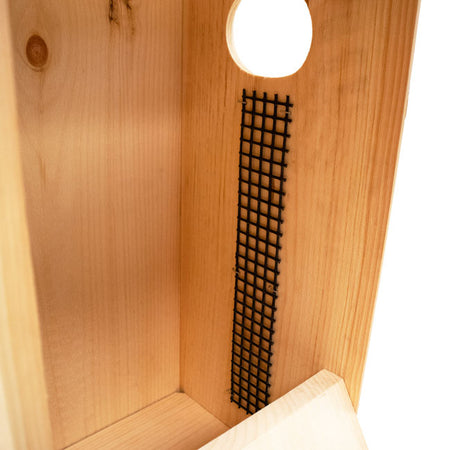 - Mesh ladder beneath the entry hole helps nestlings climb out of the shelter